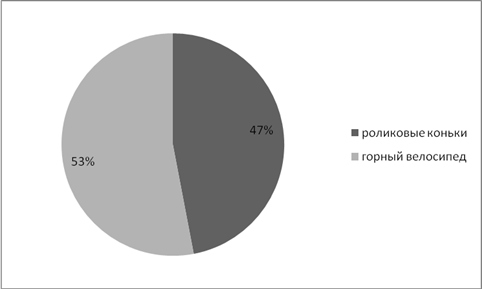 Рис. 7. Предпочтения людей в проведении отпуска На вопрос: – «Увлекаетесь ли Вы пешими и велосипедными прогулками?». 82 человека ответили – « Да, увлекаюсь, потому что предпочитаю вести здоровый образ жизни» и 18 человек ответили, что не увлекаются, так как нет свободного времени, а если оно появляется, то отдаю предпочтение просмотру телепередач, чтению литературы и прессы, стараюсь спокойно провести досуг перед предстоящей рабочей неделей. На вопрос: – «Хотели ли бы Вы проводить свободное время на СОК «Высокогорье»? 70 человек ответили – «Да, потому что не требуется больших материальных затрат»; 5 человек ответили – «Нет» и 25 человек затруднились ответить; На вопрос: – «Какую сумму денег, Вы готовы потратить на отдых на территории СОК «Высокогорье»? 60 человек готовы потратить до 2 тыс. руб., так как имеют не высокий доход; 27 человек ответили 2 – 5 тыс.руб., более 5 тыс.руб. готовы потратить 13 человек, в связи с тем, что готовы потратить деньги, но нет возможности выезда на длительное время. На вопрос: – «Как Вы думаете, что мешает Вам чаще посещать «Высокогорье?» 36 человек ответили, что им просто не хватает свободного времени, и 64 ответили, что посещали бы чаще, если «Высокогорье» перейдет на круглогодичное обслуживание и будут введены новые дополнительные виды спорта. На вопрос: – «Нуждаетесь ли, Вы в услугах инструктора-методиста по виду спорта?». 78 человек ответили «Да», потому, что есть желание заняться экстремальными видами спорта, но без опытного инструктора это не безопасно, и 22 человек ответили «Нет». На вопрос: – «Хотели бы, Вы заниматься новыми современными видами спорта?». 75 человек ответили «Да» и 25 «Нет». На вопрос: – « Какие дополнительные физкультурно-оздоровительные услуги Вы могли бы предложить развивать на «Высокогорье?».43 человека предложили катание на роликовых коньках, и 57 катание на горном велосипеде, что представлено на рисунке 8.