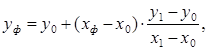где x1 и х0 - верхняя и нижняя граница отрезка для аргумента; y1 и y0 - верхняя и нижняя граница отрезка для функции; xф - фактическое значение аргумента внутри отрезка; yф - исходное значение функции внутри отрезка. Найдём значение функции внутри отрезка: