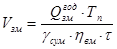 де γсум – об’ємна маса кормо суміші, т/м3 ; ηзм – коефіцієнт заповнення ємності змішувача; ηзм = 0,7 – при наявності в суміші стеблових кормів (силосу, соломи та ін.); ηзм = 0,8 – для інших видів кормо суміші; τ – коефіцієнт використання часу зміни (0,75); Тп – тривалість приготування однієї порції кормо суміші в змішувачі (попередньо приймається Тп = 1год).