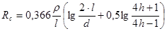 де р – питомий опір ґрунту, Ом ∙ м; 1, в – довжина й діаметр заземлювача, м; h – глибина закладення труби, м.