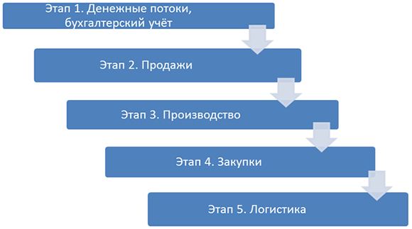 Рис.12.1. Путь длинною в жизнь Т.е. при начале деятельности фирмы, всё внимание её руководства, как правило, сосредотачивалось на управлении деньгами, учёте их движения и бухгалтерской отчётности. Затем, начинается этап выстраивания продаж. Начинают формироваться некие подходы к формированию условий продаж, прайсов, скидок, бонусов а также анализа результата продаж. Далее, дистрибьютеры начинают задумываться над вопросами организации производства на контрактной основе. Возникают вопросы учёта затрат на комплектующие и расходные материалы в конечной себестоимости продукции. Затем, начинается этап учёта затрат на пути от Поставщика до основного склада (Закупки). На этом этапе также немало вопросов. Особенно если номенклатура превышает 400 наименований а количество поставщиков – более 10. Отработка решений на каждом из этих этапов нередко длится не один год. И наконец, наступает очередь управления издержками в целом по всей логистической цепочке фирмы. И вот тут-то обнаруживается, что нужно пересматривать все предыдущие 4 этапа заново, поскольку логистика пронизывает своими процессами весь бизнес компании… Вот почему, данный подход к управлению издержками в специальной литературе с горькой иронией называют «Путь длинною в жизнь». Во многом этот путь обусловлен исторической эволюцией развития науки и практики товародвижения в нашей стране. На первом её этапе, главное было – произвести. Это были законы СССР. Затем наступил второй этап - пост-советская Россия, где главным стало - продать. Поэтому, такой подход в основном проповедуют менеджеры, воспитанные старой школой учёта издержек, построения бюджетирования на фирмах и разбивки затрат на зоны ответственности в соответствие с организационно-штатной структурой компании. В основе данной системы управления издержками лежит информация, получаемая из бухучёта. В ней нет места процессному планированию. Высокие обороты и рентабельность, заложенная в цену товара на этих этапах, позволяла пренебрегать современными аксиомами логистики. Но постепенно, бизнес в нашей стране, правда несколько запоздало, но приходит к пониманию, что и производство и продажи это элементы единой логистической цепочки поставок. И, следовательно, именно законы и реалии логистики необходимо ставить во главу угла при управлении издержками в любом бизнесе. Иначе, прибыли вам не видать! А как же организуют учёт издержек лидеры бизнеса в своих отраслях в настоящее время? 1. Построение управления издержками в цепях поставок. Прежде всего, напомню несколько аксиом: долгосрочный успех компаниям обеспечивают не товары, а процессы их создания и поставок конечному потребителю; конкурируют не компании, а их цепи поставок; цепи поставок требуют сквозного управления процессами, а не отработку отдельных фрагментов (звеньев). С учётом данных аксиом и реалиев, предлагается следующая технология построения управления издержками: