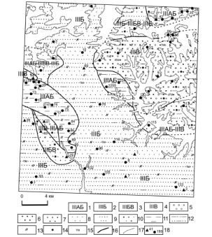 А. Е. Звонарев, Воронежский государственный университет Построение литолого-фациальных карт крупных и средних масштабов сопровождается определенными трудностями, обусловленными чаще всего неравномерной сетью обследования, а порой с недостатком информации для отдельных участков картируемой территории, удовлетворяющей соответствующим масштабам, что не дает возможности судить о полной достоверности выделенных зон и корректности выводов, на что указывалось и ранее [1]. Между тем минерагеническая оценка территорий, являющаяся обязательной при съемочных работах, должна осуществляться равномерно по всей исследуемой площади. Данная оценка часто осуществляется на литолого-фациальной основе. Для участков карт с малым количеством фактического материала и на пограничных территориях, еще не обследованных в соответствующем масштабе, выделение фациальных зон производится часто на интуитивном уровне исследователя. Для подобных площадей требуются дополнительные комментарии, основанные, прежде всего, на аналогии уже установленных сочетаний фациальных зон на смежных участках. На примере литолого-фациальной карты масштаба 1 : 200 000, составленной для аптского времени в рамках съемочного листа N-37-XXXI по выявленным особенностям сочетаний между собой фациальных зон установлены некоторые закономерности, которые должны помочь при анализе отдельных участков в будущем при сгущении сети опробования с достаточным количеством для составления карт в соответствующем крупном масштабе. При фациальном анализе указанного листа были использованы материалы съемочных отчетов и работ последних лет, проведенных в рамках данного листа сотрудниками НИИ ВГУ. В качестве основы использовалась фациальная карта аптского века Воронежской антеклизы масштаба 1 : 500 000 [2]. В соответствии с ней в пределах территории съемочного листа в аптское время осадконакопление осуществлялось в прибрежно-морских условиях с преобладанием умеренного гидродинамического режима и повышенного в северо-восточной части [2, 3]. Сгущение сети обследования позволило установить более сложную картину в распределении подзон в пределах листа на основе методики, разработанной литологами Воронежского госуниверситета [2]. Отложения аптского яруса развиты в пределах всего листа и размыты лишь в пределах крупных водотоков (рис.). Они залегают на породах валанжинского и барремского нерасчлененных и перекрываются отложениями альбского ярусов в южной и юго-западной частях территории, и породами четвертичной системы в северной и северо-восточной половине листа. Мощность яруса колеблется от первых метров до 21 м при средних значениях около 10 м. В пределах листа аптский ярус сложен преимущественно песками разной зернистости и меньше глинами. По структурным, текстурным особенностям пород и их сочетаниям в пределах развития прибрежно-морской зоны были выделены литологофациальные подзоны. Наиболее распространены подзоны с умеренным гидродинамическим режимом (III Б) (см. рис.) и с повышенной динамикой (III В), границы между которыми часто постепенные, на что указывает более сложный литологический облик осадочных толщ, сформировавшихся в переменных гидродинамических условиях. Подзона III Б занимает обширные пространства. Сложена песками светло-серыми до белых со слабыми желтоватыми оттен