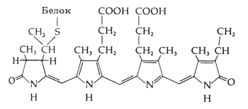 Хромофор фитохрома На восходе и закате спектры солнечного света, доходящего до поверхности земли, как всем ясно, различны. Низко над горизонтом солнце красное, что обусловлено сильной зависимостью рассеяния света от длины волны: длинноволновый красный свет рассеивается меньше, чем синий. В закатном и сумеречном свете относительно много «дальнего красного», почти инфракрасного, света. Это изменение спектрального состава солнечного света растения используют для определения длительности дня. Для этого им служит замечательный пигмент фитохром. Этот пигмент существует в двух формах. Одна форма Фк – «фитохром красный» – поглощает свет в «дневной» красной области в районе длин волн 660 нм и ... превращается во вторую форму Фдк – «фитохром дальний красный». Эта форма фитохрома поглощает «сумеречный» красный свет с длиной волны 730 нм и при этом (что самое замечательное) снова превращается «обратно» в Фк. В темноте Фдк медленно превращается в Фк.