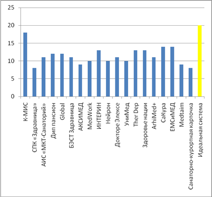 Результаты сравнения медицинских информационных систем для ЛПУ санаторного типа за общепринятыми критериями приведены на рис. 1.