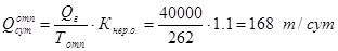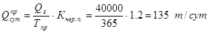 Qа с -среднесуточное отправление груза автотранспортом; kнер -коэффициент неравномерности распределения отправки (kнер = 1.4); lа -длина автомобиля ( lа = 4 м); tа -средняя продолжительность погрузки одного автомобиля ( tа = 20 мин); mа -средняя загрузка автомобиля ( mа = 4 т); Tсут -продолжительность работы склада в сутки ( Tсут = 13.3 ч.); Определение потребного количества подъемно-транспортого оборудования