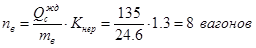 Lв – длина вагона ( Lв = 13.43 м); Zп – число подач ( Zп = 1); Zс – число смен (перестановок) вагонов ( Zс = 1); ам – удлинение грузового фронта для маневрирования локомотивами (ам = 20м); nв – среднесуточное поступление вагонов на склад: где Qжд с – среднесуточное поступление грузов; mв – средняя загрузка вагонов, mв = 24.6 т ; kнер – коэффициент неравномерности прибытия, kнер = 1.3 2. Длина грузового фронта со стороны подхода автотранспорта:
