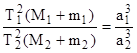 Теперь с его помощью оказалось возможным вычислять массы небесных тел. Полагая в выражении (II.14) массы спутников планет m1 и m2 равными нулю (ввиду их малости в сравнении с массой планет, за исключением Луны) и приняв массу Земли M2 = 1, получим соотношение (II.14) следующего вида: