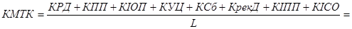 де L - загальне число показників у чисельнику. У даному випадку L = 8. Слід зазначити, що більшість коефіцієнтів мають різні величини для різних продуктів. Тоді для розрахунку конкурентноздатності маркетингової діяльності фірми потрібно визначити суму коефіцієнтів (КМТК) для всіх її продуктів:
