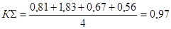 Підсумовуючи перераховані вище коефіцієнти і знаходячи середнєарифметичну величину, визначимо підсумковий показник конкурентноздатності маркетингової діяльності: