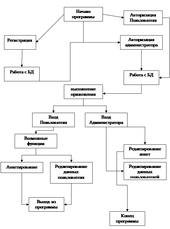 Рис. 4.1 Структура работы приложения 5 Описание интерфейса и отчетных формФормы в приложении: 1. Форма для регистрации будет отражена на рис. 5.1.
