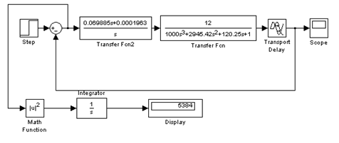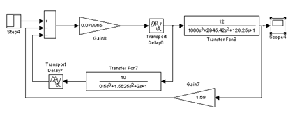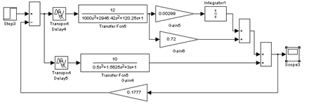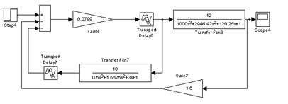 Передаточная функция по основному каналу: Коэффициент усиления K = 12 Запаздывание tau = 112,5 (с) Коэффициенты числителя b[0] = 1 Коэффициенты знаменателя F[0] = 1 F[1] = 120,25 (с) F[2] = 2945,42 (с F[3] = 1000 (с Вид передаточной функции