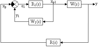 Структурная схема эквивалентной одноконтурной АСР со вспомогательным регулятором R1(s). Передаточная функция эквивалентного объекта для основного регулятора R(s) имеет вид:
