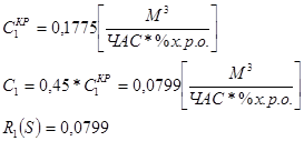 Передаточная функция эквивалентного объекта для вспомогательного регулятора R1(s) имеет вид: