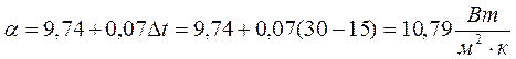 Температура наружной поверхности изоляции не должна быть выше 30 °С (по санитарным нормам). Примем температуру окружающего воздуха t= 15°C и определим суммарный коэффициент теплоотдачи в окружающую среду лучеиспусканием и конвекцией по уравнению:
