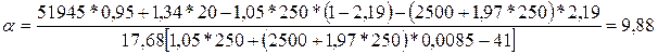 Количество тепла, выделяющегося при сжигании 1 кг топлива: Q= Qv /рт = 33868/0,652 = 51945 кДж/кг. (3) Масса сухого газа, подаваемого в сушильный барабан, в расчете на 1 кг сжигаемого топлива определяется общим коэффициентом избытка воздуха α, необходимого для сжигания топлива и разбавления топочных газов до температуры смеси tсм = 250 °С. Значение α находят из уравнений материального и теплового балансов. Уравнение материального баланса: