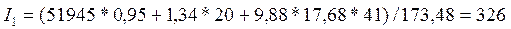 Количество тепла Qv , выделяющегося при сжигании 1 м3 газа, равно: Qv = 0,92*35741 + 0,005*63797 + 0,05*10810 + 0,01*12680=33868 кДж/(м3 *т). Плотность газообразного топлива рт :