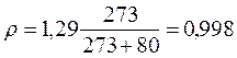 где ξ – коэффициент гидравлического сопротивления; ρ – плотность воздуха при рабочих условиях кг/м3 . ξ для циклона ЦН-24 равно 80 [2]. Плотность воздуха при рабочих условиях определим по формуле: