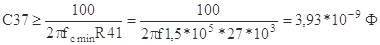 Постоянную времени цепочек R34C28,R33C27,R32C26,R31C25, выбираем в 100 раз меньше, чем постоянную времени цепи R37C31, т.е.