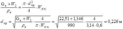 Примем скорость движения жидкости по трубе: W‘ б.т = 0,6 м/с.