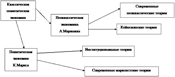 Рис.2. «Эволюция экономических теорий»[6] 3. Неоклассическая экономическая теория 3.1. Неоклассическое направление экономической мысли Экономическая неоклассическая теория(neoclassical economics) – преобладающее в XX в. направление экономической науки, сторонники которого обращают основное внимание на самостоятельную хозяйственную деятельность отдельных людей и выступают за ограничение (или даже за полный отказ от) государственного регулирования экономики. Синонимом понятию «неоклассическая экономическая теория» часто считают «экономический либерализм ». §1. Сущность неоклассицизма В конце XIX в. в экономической теории обозначилось неоклассическое направление. Такое название оно получило в связи с тем, что представители, входивших в него школ, ориентировались на исходные принципы классической буржуазной политической экономии - свободу предпринимательства и ценообразования, автоматизм рыночного саморегулирования и т. д. Неоклассики ставили задачи исследовать данные принципы в новых условиях и стремились к разработке моделей, имеющих практическое значение для функционирования капиталистических фирм в системе рыночного механизма. Возникновение неоклассического направления связано с разработками представителей кембриджской школы А. Маршалла, Ф. Эджуорт, А. Пигу, А. Кларка, которые поставили задачу создания политически и идеологически нейтральной, «чистой» экономической теории, что нашло отражение и в изменении самого названия науки с «политически экономии» на «экономикс ». Неоклассическая теория не рассматривала сущность таких экономических категорий, как собственность и стоимость, а сосредоточилась на внешних проявлениях рыночного хозяйстваи постепенно приобрела черты прикладнойнауки. Особенностью неоклассической теории явилась ее микроэкономическая направленность на изучение механизма движения отдельных товаров, функционирования отдельных хозяйственных единиц и рынков. Анализ осуществляется по следующему алгоритму: из совокупности взаимодействующих элементов рыночного механизма выбирается один как изменяющийся, и исследуется его влияние на другие элементы, считающиеся неизменными, и так по каждому элементу. Неоклассический анализ рассматривает взаимовлияние элемента рынка преимущественно не в качественном, а в количественном аспекте. Таким образом, «экономикс » и «политическая экономия » в англо-американской литературе рассматриваются как синонимы. Некоторые ученые Запада под политической экономией понимают не экономическую теорию в целом, а экономическую политику как самостоятельную отрасль наук.[7] §2. Школы неоклассического направления экономической теории[8] Основными школами, которые представляют неоклассицизм, являются: 1. Австрийская (К.Менгер, Ф.Визер, Э.Бем-Баверк ); 2. Лозаннская (Л.Вальрас); 3. Американская (Дж.Б. Кларк); 4. Кембриджская (А.Маршал). §2.1. Австрийская школа политической экономии Основателем австрийской школы является Карл Менгер (1840-1921), профессор Венского университета. Он родился в дворянской семье и получил образование в Венском и Пражском университетах. В 1871 г., ещё до начала своей будущей университетской карьеры, К. Менгер издал произведение «Основания политической экономии». Второе издание названного фундаментального труда вышло в свет только в 1923 г., через два года после с