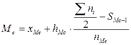 в статистике называется варианта, расположенная в середине вариационного ряда. Если ряд дискретный имеет нечётное число, то медианой будет варианта, расположенная в середине упорядоченного ряда и её порядковый номер В интервальном ряду медиана рассчитывается по формуле: