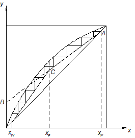 Мы получили уравнение рабочей линии процесса экстракции, которое графически выражается прямой линией. В случае действующего экстрактора значения