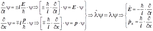 4) Подстановки E = ћw = mc2 Þw = mc2/ћ = pc/ћ Þw = E/ћ приводят к формуле для плоской волны материи 5) Плоская волна материи. Операторы динамических переменных