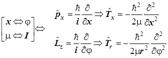 3. Плоский ротатор - простейшая модель вращения в плоскости. Условие однозначности и комплексные волновые функции плоского ротатора. Квантование энергии. Вырождение уровней. Действительные орбитали, их полярные графики и классификация состояний-уровней: {s, p, d,... }. Рабочие формулы: Формула оператора момента импульса в плоском вращении подобна формуле оператора импульса в поступательном движении. Необходимы замены величин xÛj и m=I: