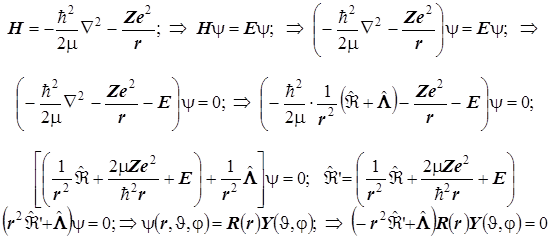 Вращательные соcтояния {s, p, d, f,... } Ûl={0,1,2,3}. Углы прецессии момента импульса. Уравнение Шрёдингера для одноэлектронного атома (водородоподобного иона). Разделение переменных и квантование динамических величин: