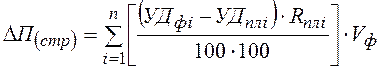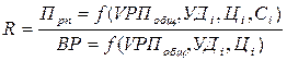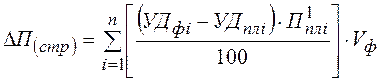 где УДф i , УДпл i - соответственно фактический и плановый удельный вес i-го вида продукции в общем объеме реализации, %; П1 пл i - плановая сумма прибыли на единицу i-го вида продукции; Vф - фактический общий объем реализованной продукции в условно-натуральном выражении. Также для расчета влияния структурного фактора на изменение общей суммы прибыли можно использовать модель: