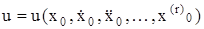 Его выходной функцией служит x(t), а управляющей u(t). Будем задавать желаемое движение объекта в классе непрерывных r раз дифференцируемых функций. Согласно теореме Вейерштрасса о приближении любая непрерывная функция может быть аппроксимирована полиномом с любой наперед заданной точностью. Поэтому в качестве функции, задающей требуемое движение, может быть выбран полином от времени следующего вида