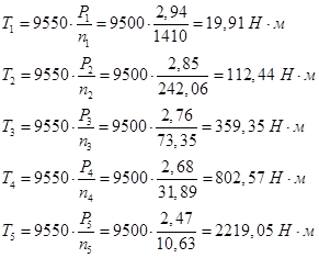 Определим крутящие моменты: