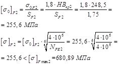 Принимаем меньшее значение Допускаемые напряжения для расчёта на изгибную выносливость:
