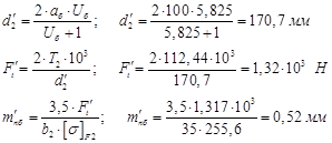 Принимаем Диаметры делительных окружностей d :