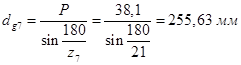 Делительный диаметр ведомой звездочки: