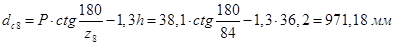 Диаметр окружности выступов ведомой звездочки: