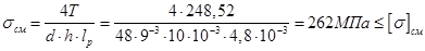 Эквивалентное напряжение в опасном сечение: