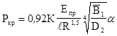 Рис. 25 qв = q(1/(1 + d)); qн = q(q/(1 + d)); d = l ·(dн /dв ) , l = E1н /Е1в = 6,8·105 /6,8·105 = 1 , q = 8157/(p·140,5) = 18,48 (кг/см2 ), d = 1·(1,2/1,5) = 0,8 , qв = 18,48(1/(1 + 0,8)) = 10,27 (кг/см) [s02 ] = 27,5 (кг/мм2 ). qн = 18,48(0,8/1,8) = 8,21 (кг/см), sвн = 1027/0,15 = 68,5 (кг/см2 ), sн = 8,21/0,12 = 68,42 (кг/см2 ) . Избыток прочности: h = 27,5/0,685 - 1 = >> 39,14 . 2.7.4. Проверка прочности внутреннего канала на внешнее давление Расчетные нагрузки: 1. Установившийся режим Н = 0; М = 0; Разрежение на входе в заборник распространяется на всю длину канала: DpD = -0,645 кг/см2 ; dст.соты = 0,04 ; sм = 2400 кг/см2 ; sxz = 83 кг/см2 ; Gyz = 55,42 кг/см2 ; Gзап = Ö35,4·83 = 67,8 кг/см2 . Определяем Ркр для несимметричной трехслойной оболочки с мягким средним слоем (рис. 26)