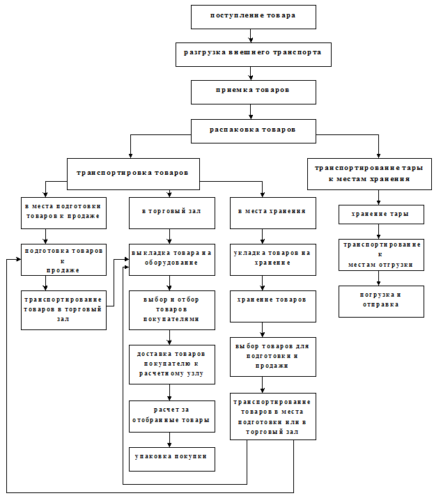 Структура и последовательность операций торгово-технологического процесса в магазинах самообслуживания