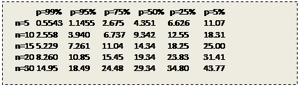 Далі вам слід відповісти самому собі на питання, чи досить схожий даний розподіл на очікуване вами. Пам'ятаєте: якщо генератор випадкових чисел хороший, він генерує послідовності випадково. У істинно випадковому варіанті всі послідовності можливі. Дійсно, як якась послідовність може бути не випадковою, якщо будь-яка послідовність можлива? Просто деякі послідовності менш схожі на те, якою має бути випадкова послідовність, чим інші. Ви можете визначити вірогідність того, що дана послідовність є випадковою, використовуючи критерій хі-квадрат. У критерії хі-квадрат очікувана кількість віднімається із спостережуваної кількості зустрічей числа в послідовності, що згенерувала. Цей результат називається V. Ви можете використовувати Vдля знаходження відсотка в таблиці значень хі-квадрат. Цей відсоток визначає вірогідність того, що була породжена випадкова послідовність. Мала таблиця хі-квадрат приведена на рисунку (3.1); ви можете знайти повні таблиці в більшості книг за статистикою
