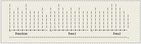 Рис. 3.1. Мала таблиця хі-квадрат Вибрані значення хі-квадрат. Для визначення вірогідності того, що послідовність не випадкова, знайдіть рядок в таблиці, показаній на рис. (3.1), з числом елементів послідовності; в даному випадку це 20. Потім шукайте число по рядку, яке більше V. В даному випадку це колонка 1. Це означає, що існує вірогідність 99% того, що приклад з 20 елементів матиме V більше 8,260. З іншого боку це означає, що існує вірогідність лише в 1% того, що послідовність, що перевіряється, згенерувала випадковим чином. Аби пройти через критерій хі-квадрат, вірогідність V должна знизитися до рівня від 25% до 75%. Проте ви можете протиставити цьому виводу питання: Оскільки всі послідовності можливі, як може дана послідовність мати лише однопроцентний шанс бути законною? Відповідь така: це всього лише вірогідність. Фактично, якщо ви застосовуєте критерій хі-квадрат, вам слід отримати декілька різних послідовностей і усереднений результат, аби уникнути відкидання хорошого генератора випадкових чисел. Будь-яка одинична послідовність може бути знехтувана, але ряд різних послідовностей після усереднювання повинен давати добрий результат. З іншого боку, послідовність може пройти через критерій хі-квадрат і не бути випадковою. Наприклад, послідовність 1 3 5 7 9 1 3 5 7 9 пройдет критерій хі-квадрат, але вона виглядає не дуже випадковою. В даному випадку згенерував пробіг по діапазону значень. Пробіг - це просто зростаюча або убуваючи послідовність чисел з довільним інтервалом. В даному випадку кожна група з п'яти цифр є зростаючою послідовністю і як така не може вважатися випадковою послідовністю. Іншою характеристикою, належній оцінці, є довжина періоду: тобто, як багато чисел може згенерувати до початку повторення послідовності. Всі машинні генератори випадкових чисел завжди генерували послідовність, що повторюється. Чим довше період, тим краще генератор. Навіть якщо частота чисел усередині періоду розподілена рівномірно, числа не утворюють випадкову серію, оскільки дійсно випадкова серія не може досить повторюватися. У загальному випадку період в декілька тисяч чисел задовольняє більшості вживань. Різні інші тести можуть бути застосовані для визначення якості генератора випадкових чисел. Напевно, можна написати більше програм для перевірки генераторів випадкових чисел, чим створити самих генераторів. Розглянемо ще один тест, який дозволить вам перевірити генератор випадкових чисел "візуально", використовуючи діаграму для демонстрації характеристик послідовності, що згенерувала. У ідеалі діаграма повинна грунтуватися на частоті кожного числа. Проте оскільки генератор може породжувати тисячі різних чисел, це не здійснимо. Замість цього створюватимуться діаграми, згруповані до десяти цифрам. Наприклад, оскільки породжувані числа лежать в області від 0 до 1, число 0.9365783 буде включено в групу 9, а число 0.34523445 буде включено в групу 3. Це означає, що діаграма виведення випадкових чисел має 10 ліній, кожна з яких представляє число попадань в групу. Програма також виводить середнє значення послідовності, яке може бути використане для виявлення змішення. Як і всі інші програми даної курсової роботи, наступна програма виконується лише на персональному комп'ютері IBM РС, який має адаптер кольорового графічного дисплея. Розроблені раніше функції Ran1 і