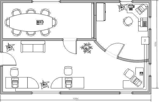 4. Разработка конфигурации сети Сеть будет проектироваться на базе стандарта Ethernet 10/100 Base-T. Технология Ethernet не отличается рекордными характеристиками и оптимальными алгоритмами. Но благодаря мощной поддержке, высочайшему уровню стандартизации, огромным объемам выпуска технических средств сети Ethernet резко выделяются среди других стандартных сетей. Сеть Ethernet на базе витой пары развивается с 1990г. И сегодня является наиболее популярной. Стандарт 10/100 Base-T имеет следующие достоинства: · Возможность перехода на FastEthernet. · Повреждение одного из кабелей не выводит из строя всю сеть. · Упрощается локализация отказов оборудования и монтаж сети. Нужно также отметить, что данный стандарт позволяет без особых проблем добиться стабильной работы сети, обеспечивая при этом высокую скорость передачи данных (до 100 Мбит/с). Для создания сети будет использоваться неэкранированная витая пара категории 5е, поскольку она позволяет передавать информацию с необходимой нам скоростью. В данном случае достаточно организовать одноранговую сеть, так как для хранения и обмена информацией по сети выделение отдельного сервера не требуется. Конфигурация сети представлена в табл. 2. Структурная схема сети с планом помещения отдела тестирования, построенная с помощью редактора деловой графики MicrosoftVisio, приведена на рис.3. Таблица 2