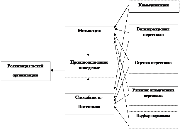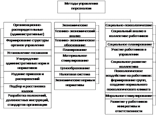 Рисунок 1 - Модель управления человеческими ресурсами Методами управления персоналом называют способы воздействия на коллективы и отдельных работников с целью осуществления координации их деятельности в процессе производства. Все методы делятся на три группы: административные, экономические и социально-психологические (рис. 2).