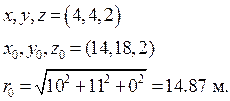 Найдем длину пути для каждого из следующих сигналов, отраженных от поверхностей. Для этого находим координаты xи , yи , zи первичного мнимого источника, который соединяется с приемником прямым лучом. После чего определим: