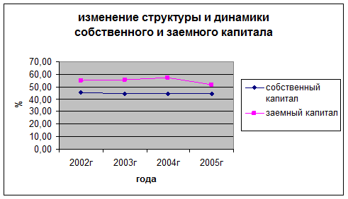 Рисунок 8. Изменение коэффициента финансового риска (финансового левериджа) Таким образом, степень финансового риска довольно велика, поскольку намного превышает нормативные значения. Наибольшая опасность была в 2004 году, когда коэффициент риска имел максимальное значение. В 2005 году наблюдается общее снижение данного показателя. Во многом это обуславливается снижением заемного капитала в общей структуре.