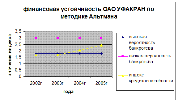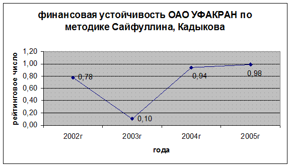 Обобщающая оценка финансовой устойчивости нашего предприятия представлена в таблице. Таблица 34 Обобщающая оценка финансовой устойчивости ОАО “УФАКРАН”