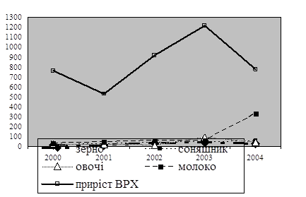 Рис.2.5 – Динаміка виробництва основних видів продукції в ТОВ АФ «імені Мічуріна» Таблиця 2.8 Витрати на виробництво і собівартість 1ц продукції рослинництва і тваринництва, в грн.