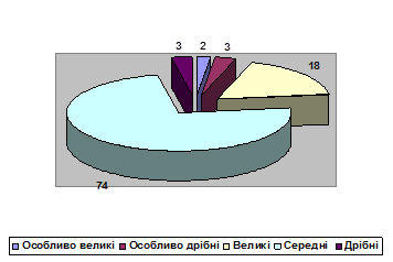 Рис. 2.3 Сегментування клієнтів по обсягам угод у 2004 році (у %) Аналіз структури продажів продукції ТОВ „ЛОГІКОН” виконаний за даними за 2001 рік дозволяє зробити наступні висновки: усіх клієнтів компанії можна розділити на великих, середніх і дрібних; частки сегментів у загальній кількості клієнтів розподілені в такий спосіб: великі - 18%; середні - 74%; дрібні - 3%. Таким чином, політика продажів компанії повинна бути спрямована на розширення співробітництва з великими клієнтами і згортання співробітництва з дрібними. Нижче наведена аналітична таблиця впливу фактора "покупця" на діяльність компанії, виконана на підставі даних маркетингового дослідження і даних експертних оцінок співробітників компанії. Таблиця 2.11 Вплив клієнтського середовища на діяльність ТОВ „ЛОГІКОН”