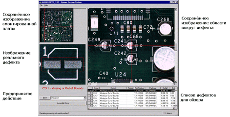 Рисунок 10 – Программный пакет Review Pro Программный пакет Access Pro™ для статистической обработки данных позволяет оценить стабильность технологического процесса. Для этого измеряется количество брака на множестве плат, и на основе оценки числа прошедших проверку плат и обнаруженных дефектов программа вскрывает существующие в технологическом процессе тенденции. Программный пакет оперирует общепринятыми показателями оценки брака, включая общее количество брака, среднее количество дефектов и распределение Парето для прошедших контроль и признанных дефектными плат. Все эти данные экспортируются в таблицу в формате Microsoft Excel, на основе которой пользователь может самостоятельно создавать любые отчеты. Программный пакет Review Pro™ предлагает оператору возможность сбора данных по дефектам для каждой платы, а также возможность сбора воедино данных по ремонту, действиям и комментариям оператора. Простой в использовании интерфейс сводит к минимуму время обучения оператора. Несколько уровней безопасности позволяют операторам с различной квалификацией эксплуатировать программное обеспечение с разным уровнем функциональности. Уровень доступа «Программист» даёт привилегии неограниченного доступа и управления, позволяющие изменять отклик машины и подсказки, появляющиеся на экране. Для функционального контроля применяется система внутрисхемного и функционального электрического контроля электронных модулей на печатных платах SPEA 3030. Особенности системы SPEA 3030: - максимальное количество тест каналов: до 4096 аналоговых и 2048 цифровых; - контроль напряжения, тока, номиналов пассивных компонентов; - до 8 программируемых ИП; - измерение частоты до 10 МГц, периода до 100 нс, счетчик событий до 100 млн. -