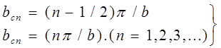 Что касается соотношений (14), то они превращаются в специальный способ разложения в ряд Фурье. Иначе говоря, представляют собой разложения по системе ортогональных функций, превращающихся в нуль при | y | =b. Физически они представляют собой собственные колебания плоскопараллельного волновода. Достаточность таких разложений будет видна из обсуждения свойств регулярности, о которых речь идет ниже. Окончательно, в качестве решения уравнений (12), удовлетворяющих граничным условиям (В2), (В3), можем записать следующие выражения :